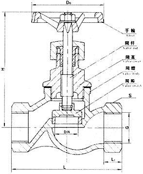 丝扣截止阀外形尺寸和连接尺寸: