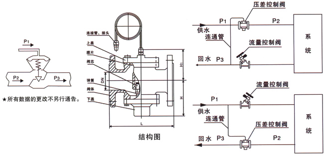 P1是外部网络热入口装置的供水管道压力。P是起诉制度的差异。P2是通过控制系统后阀前的压力。p’差压阀工作压差;P3是热入口装置出口处的水管压力。